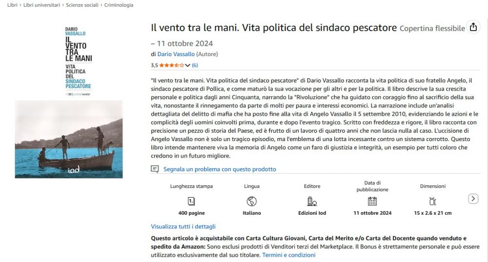 Nel corso dell'evento ampio spazio ha trovato la presentazione del libro il "Vento tra le mani" scritto dal dr. Dario Vassallo, fratello di Angelo, incentrato sull'impegno politico del sindaco martire. Un impegno spesso trascurato e per paradosso oscurato dalla vicenda, drammatica, della sua uccisione e dalla relativa cronaca giudiziaria che sta avendo risvolti clamorosi con l'emersione di possibili depistaggi oltre che per le accuse mosse dalla DDA salernitana ad appartenenti delle forze dell'ordine.